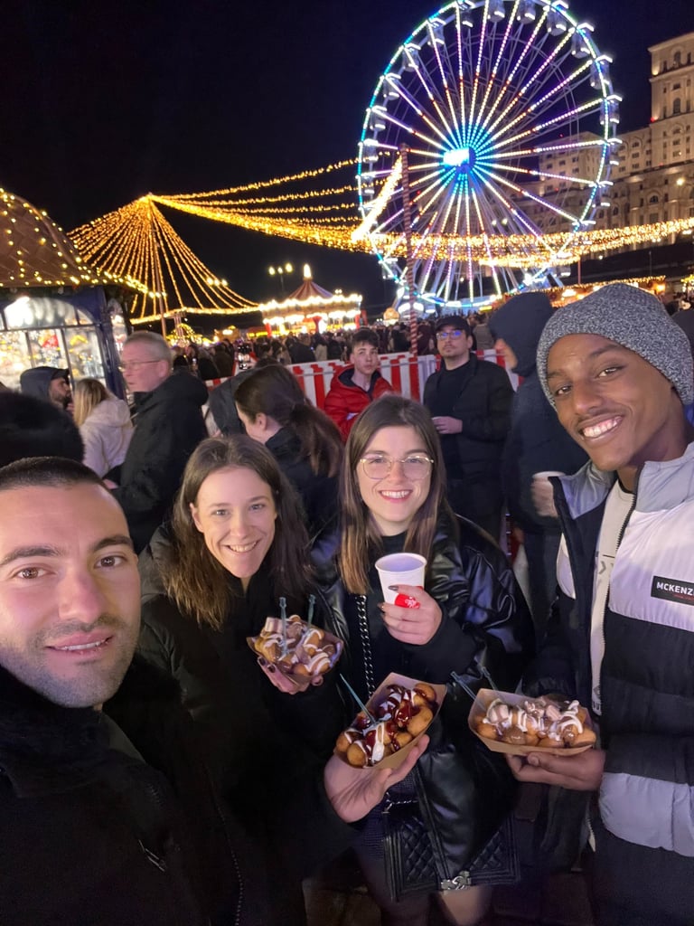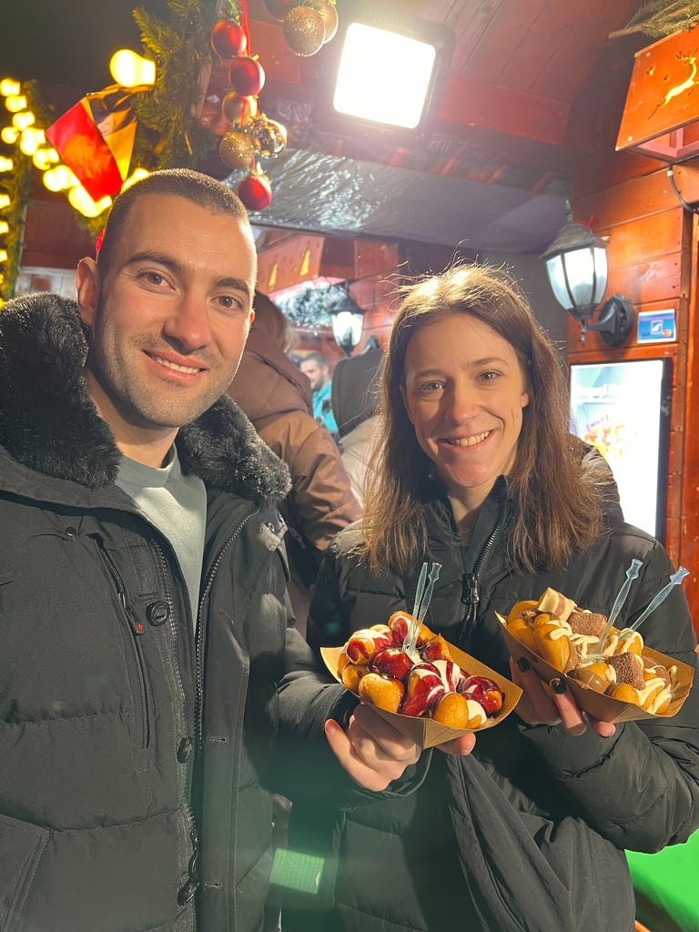 After settling in, we met other agents in the lobby. We decided to do some sightseeing ourselves before the start of the conference and went to see a Christmas market. The market was beautiful with lots of stalls with food. I got myself a snack there and enjoyed the festive vibes.